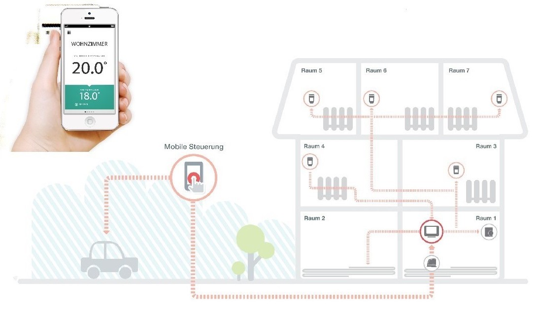 Genau so wichtig wie die Entscheidung für einen Energieträger ist die Wahl des richtigen Wärmeverteilsystems.Denn die richtige Auswahl der Heizflächen (Heizkörper, Fußboden- oder Wandheizung), und deren exakte Auslegung sind ausschlaggebend für den Komfort und den Energieverbrauch der Heizungsanlage. Der Wärmebedarf wird von uns generell nach DIN EN 12831 berechnet. "Warme Füße und ein kühler Kopf"auf diese einfache Formel lassen sich die Vorzüge einer Fußbodenheizung bringen. Diese Kombination sorgt für ein optimales Wohlbefinden dank angenehmer, großflächig abgestrahlter Wärme fühlt man sich bei 20°C genau so wohl wie in einem konvetionell beheizen Raum bei 22°C.Daß das eine Energieeinsparung von ca. 10% bedeutet werden Sie genau so angenehm empfinden, wie die Tatsache, daß in einem Raum mit Fußbodenheizung die Luft einfach besser, weil staubfreier ist. Spezielle Systeme mit geringer Aufbauhöhe ermöglichen auch dem Einsatz im Altbau. Selbst das Einfräsen der Heizrohre in einen vorhandenen Estrich, und damit die Einhaltung der bestehenden Fußbodenhöhe ist möglich. Wandheizungenbieten den selben Komfort wie Fußbodenheizungen, haben aber zusätzlich noch den Vorteil der schnelleren Regelbarkeit. Wo im Altbau wertvoller Fußboden erhalten bleiben soll, gibt es bau- und heiztechnisch kaum eine Alternative zur Wandheizung. Im Neubau, z.B. für Niedrigenergiehäusern mit geringen Wärmebedarf ist eine Wandheizung geradezu prädestiniert. EVOHOME- Heizungssteuerung mit Komfort und höchster Energieersparnis auch von Unterwegs über Smartphone-App!Das Evohome System steuert per Funk von einem portablen Steuergerät mit Touchscreen-Bedienung die Heizkörperregler an. Dadurch lässt sich die Raumtemperatur von überall aus einstellen, und in Individuellen Zeitprogrammen regeln. Durch Nutzung des Gateways ist die Steuerung und Kontrolle der Raumtemperatur über die App mittels Smartphone oder Tablet möglich. Durch dieses an die persönlichen Lebensumstände der Bewohner angepasste Heizverhalten können sich die Heizkosten bis zu 30% verringern. Es ist für alle Wärmeverteilsysteme, wie Heizkörper-, Konvektor-, Fußboden- und Wandheizung geeignet, und ist schnell , ohne Wandbeschädigung oder Eingriff in das Heizsystem zu montieren. Weitere Informationen finden Sie unter www.evohome.de. Modernisieren und finanzierenWenn finanzielle Gründe Ihrem Wunsch nach einer modernen Heizungs- oder Solaranlage im Wege stehen, haben wir hier hier die Lösung dafür: In Zusammenarbeit mit Buderus Heiztechnik und der BHW- Bank AG bieten wir den Buderus Energiesparkredit mit besonders günstigen Konditionen (ab 2,99% eff.) an. Wo auch immer Ihr heiztechnisches Problem liegt, ob Neu- oder Umbau, Wartungsarbeiten oder Havariedienst rund um die Uhr, wir werden es lösen. Als besonderen Service bieten wir auch die verbrauchsabhängige Abrechnung der Heizkosten für Mehrfamilienhäuser an. zu den Bildern: