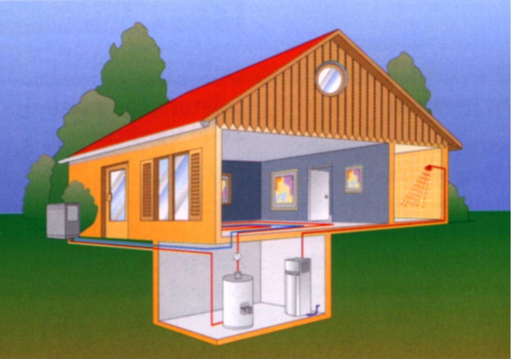 Die Heizwärme im Gebäude wird ausschließlich durch die Wärmepumpe erzeugt. Geeignet für alle Heizsysteme bis max. +65°C