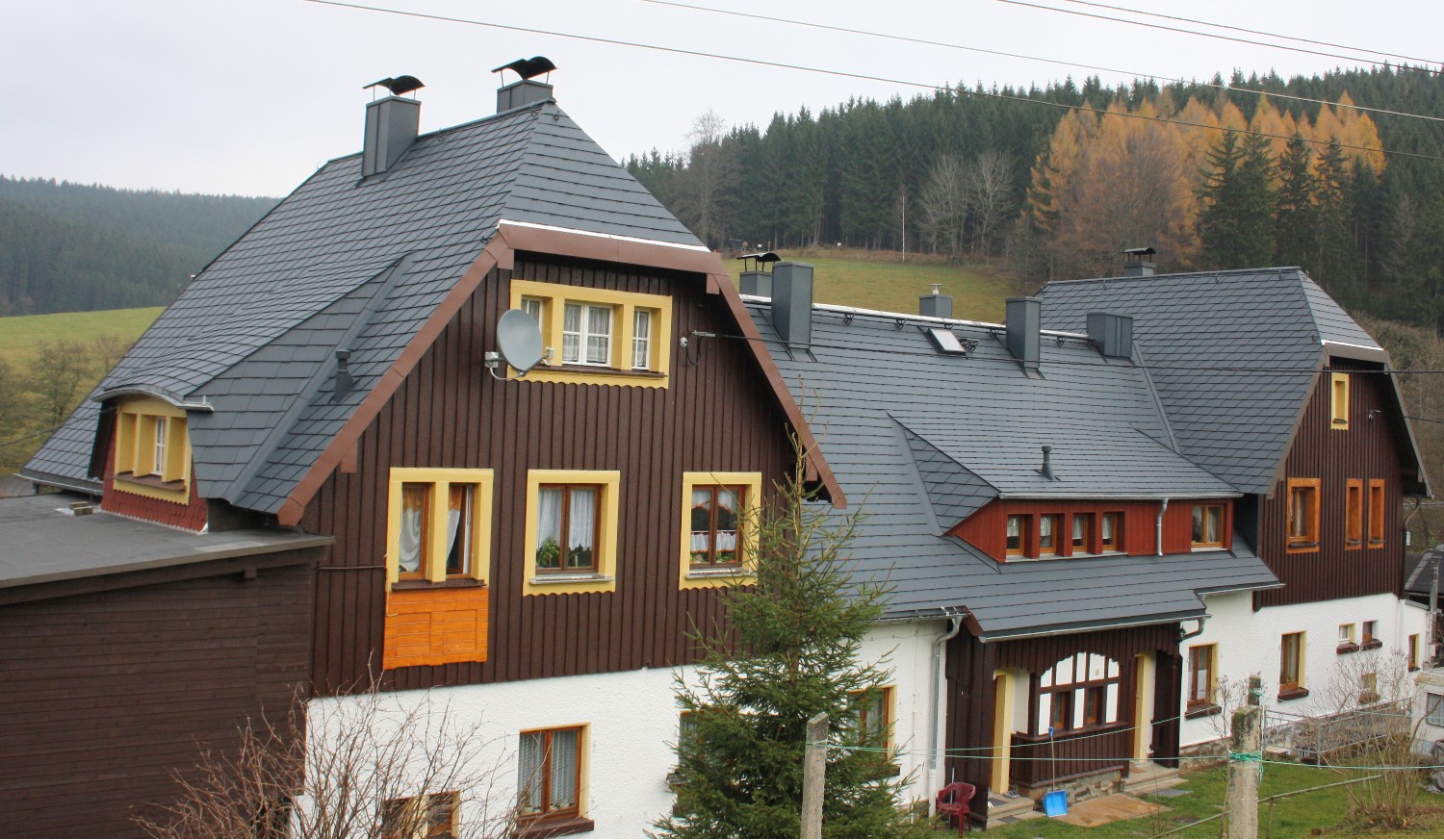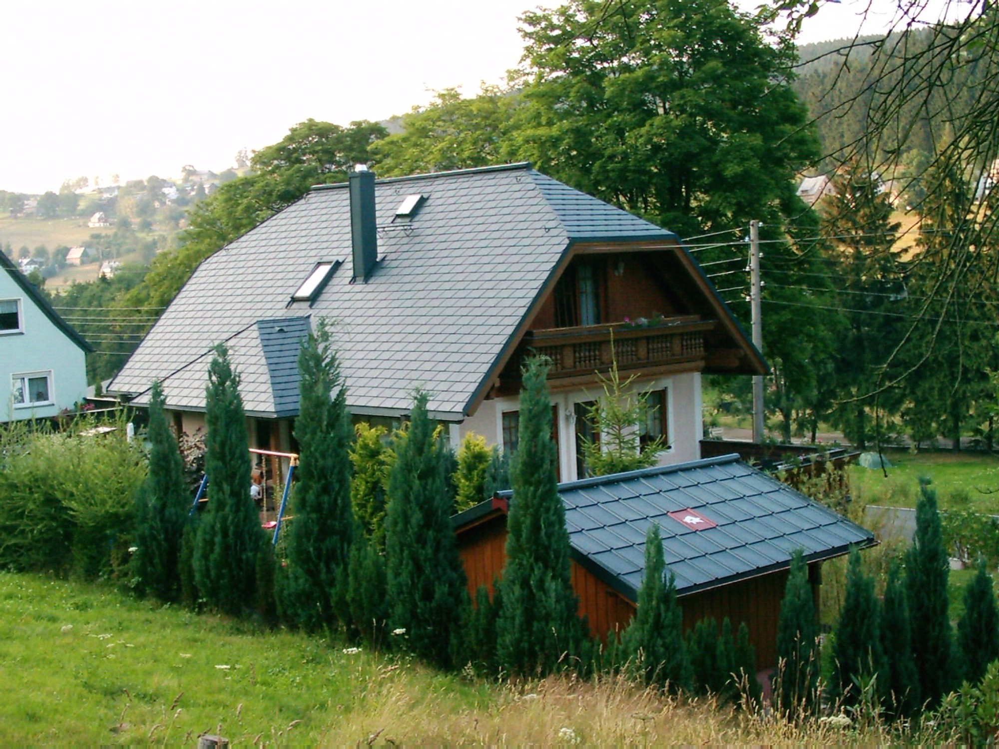 Wohnhaus Fam. Birk, 08359 Breitenbrunn, OT Rittersgrün, PREFA- Schindeln, antrazith - PREFA- Fassadensidings Holzdekor dunkel Wohnhaus Fam. Riedel, 08359 Breitenbrunn, OT Rittersgrün, PREFA- Schindeln, antrazith - Vordergrund: Geräteschuppen PREFA- Dachplatten, antrazith Wohnhaus Fam. Weigelt, 08340 Schwarzenberg,OT Erla Vordach PREFA- Falzschablonen, antrazith Wohnhaus Fam. Voigtmann, 08359 Breitenbrunn, OT Rittersgrün, PREFA- Dachplatten steingrau Wohnhaus Fam. Mroß, 08359 Breitenbrunn, OT Rittersgrün Eindeckung in Doppelfalztechnik mit PREFA Bandmaterial, antrazith Wochenendhaus Fam. Petzold, CZ- Bozi Dar, PREFA- Dachraute rotbraun, PREFA Fassadensidings Holzdekor hell Wohn- und Geschäftshaus Fam. Seltmann, 08359 Breitenbrunn, OT Rittersgrün, PREFA- Schindeln, antrazith Wohnhaus Fam. Seltmann, 08359 Breitenbrunn, OT Rittersgrün , PREFA Fassadensidings Holzdekor dunkel |
